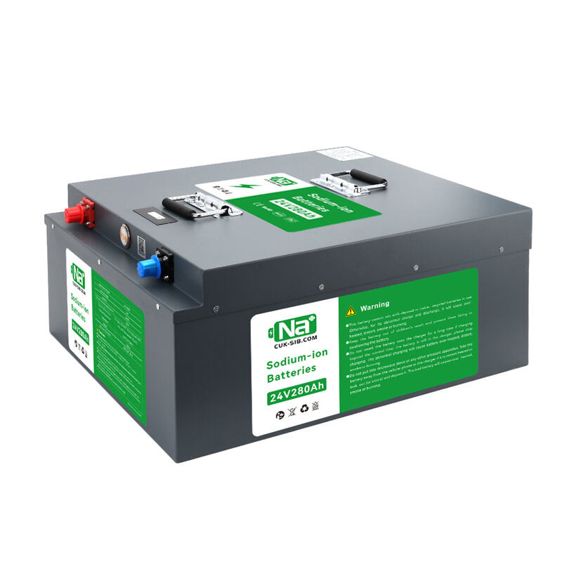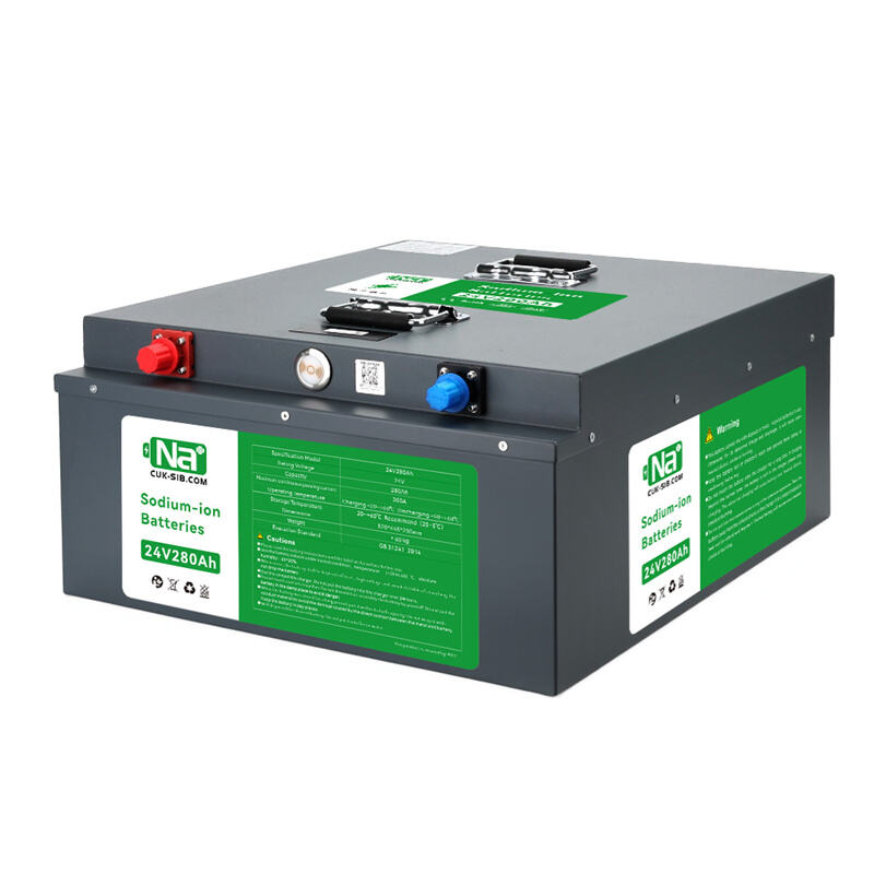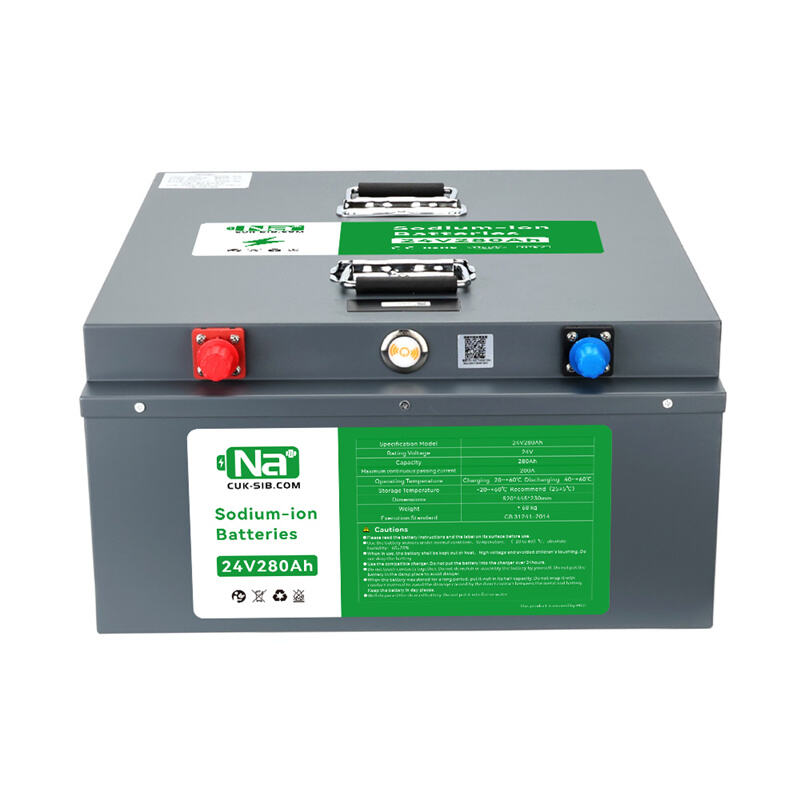 24V 280Ah sodium-ion battery: eco-friendly, cobalt-free, safe, wide temp range (-20°C~60°C), 5000+ cycles, built-in BMS, drop-in replacement for lead-acid/LiFePO₄.